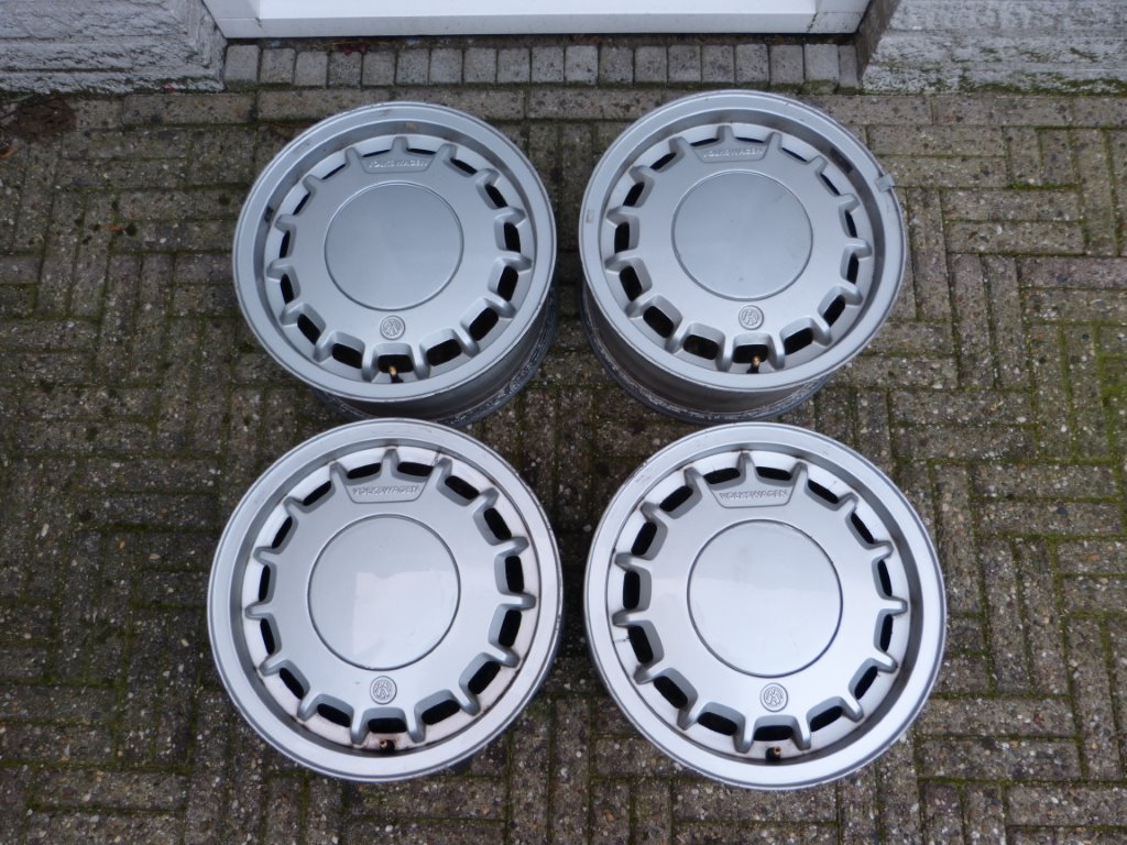 Te koop: Montreal velgen passend op de Golf 2. Het betreft originele Volkswagen wielen in de maat 6 j x 14. Dit type wiel hoort standaard onder de allereerste versies (februari 1986) van de GTI 16V te zitten. Als optie waren de wielen ook leverbaar op de GTI en de GTI 16V. Set verkeert in keurige staat. Compleet met bijbehorende deksels. Prijs € 295,- |